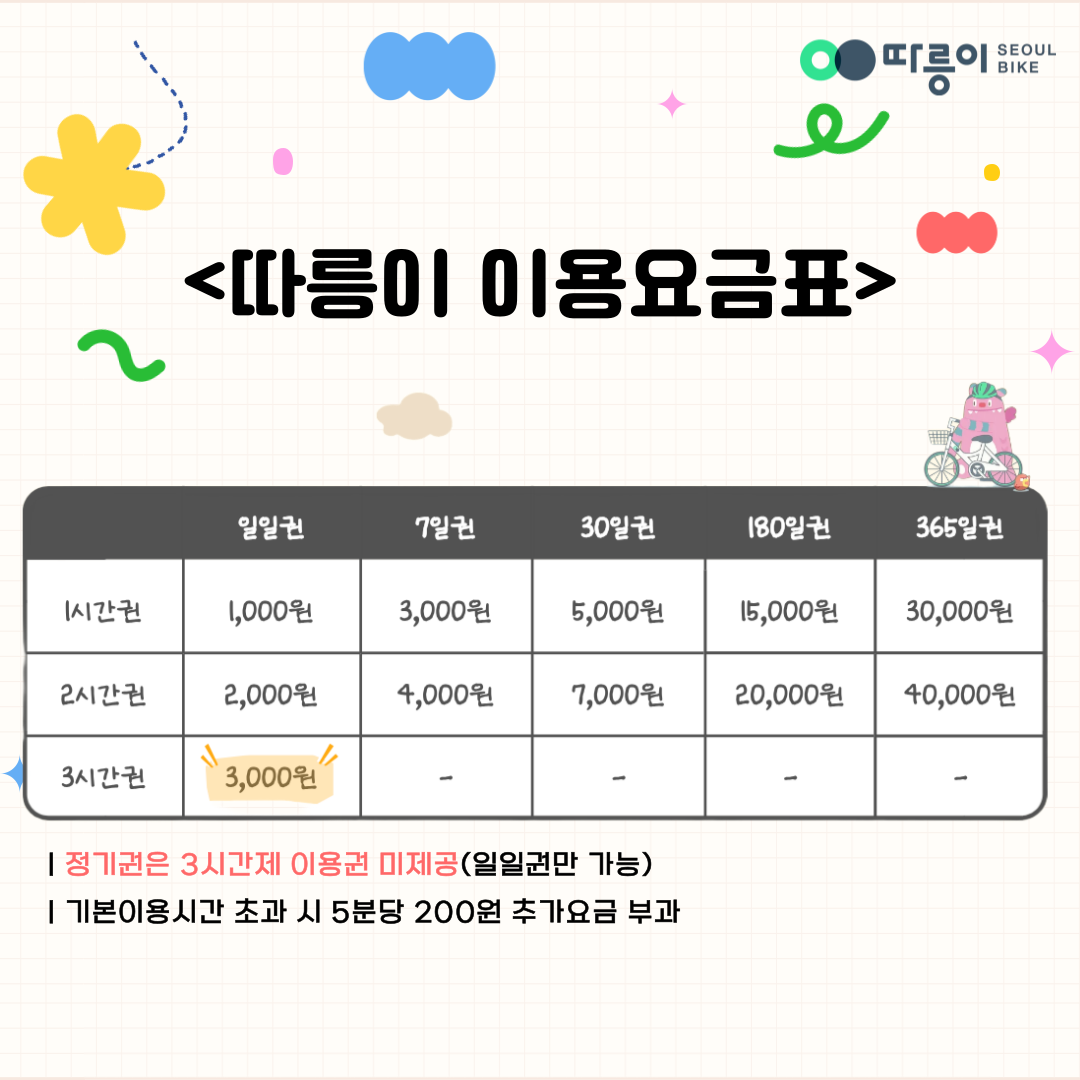 [안내] 서울공공자전거 따릉이 「3시간제 이용권」 신규 출시 (11.13.(목)~)